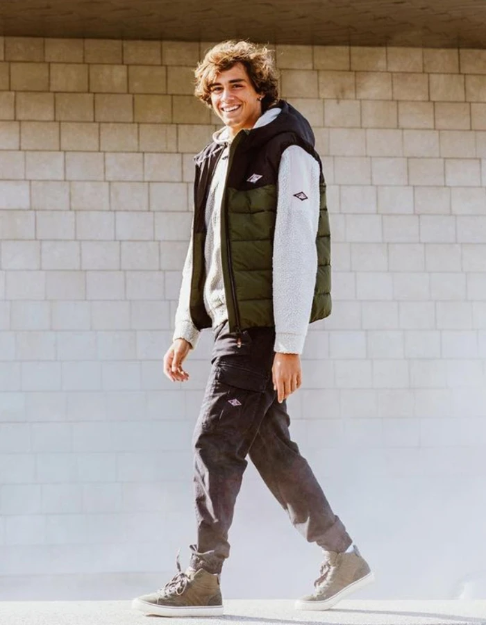 Sleeveless down jacket with hood. Logo patch applied on the front.