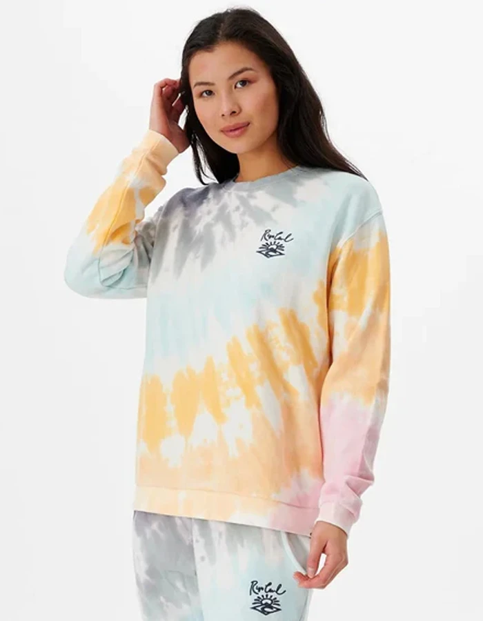 A classic surf spin on in vogue loungewear, the Surf Trip Crew is a rad women’s pullover. This comfy sweater is made from a plush and soft fabric, in a relaxed fit, with vintage look tie dye design and chest embroidery.